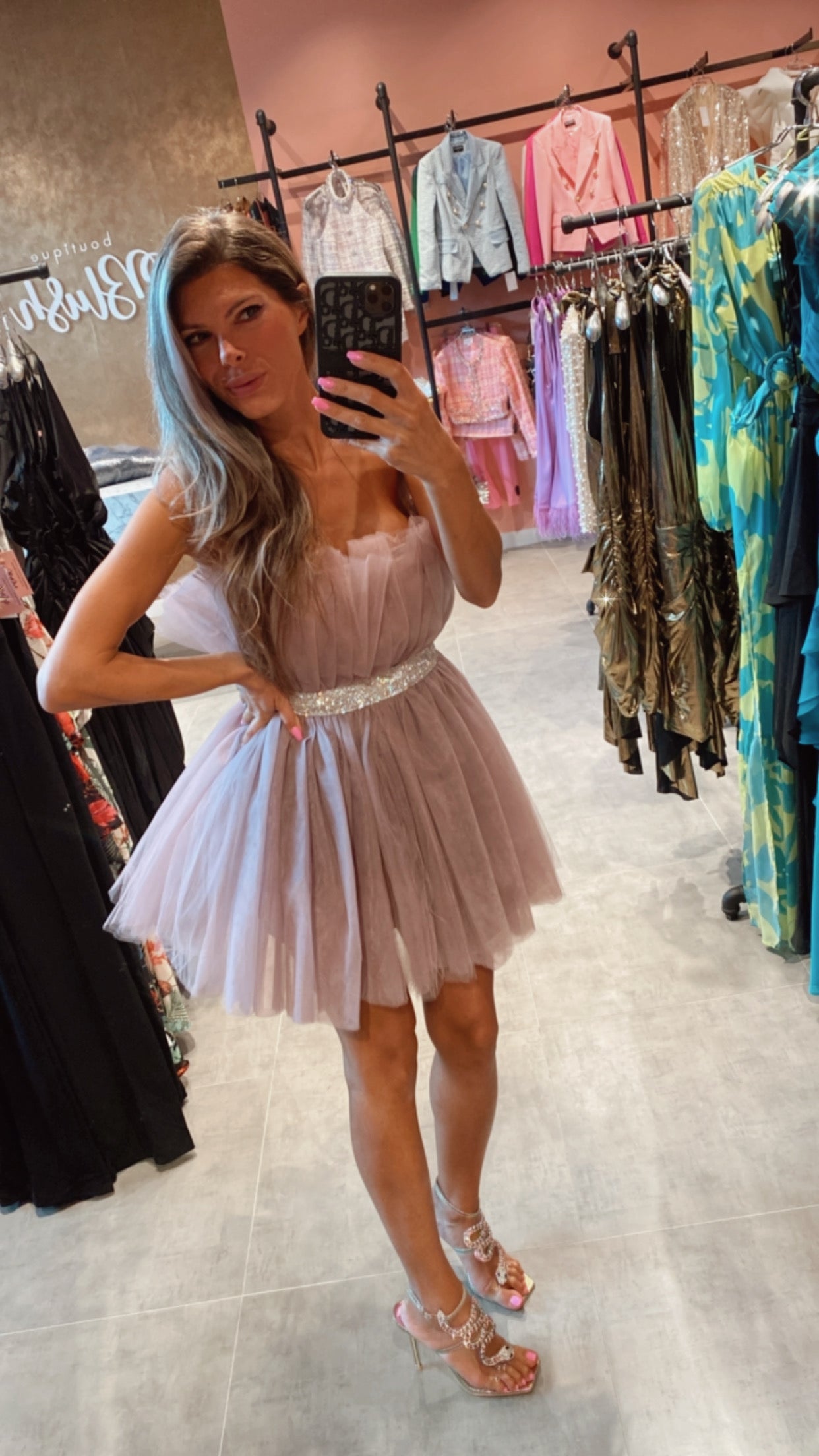 The iconic Sarah Jessica Parker Sex in the City mini Tulle dressing a dusty lavender with a crystal waist ribbon. Perfect dress for a special occasion , birthday party.